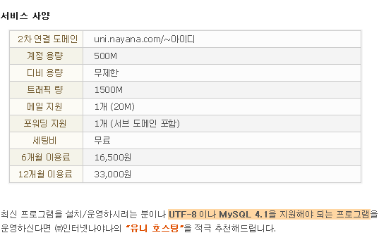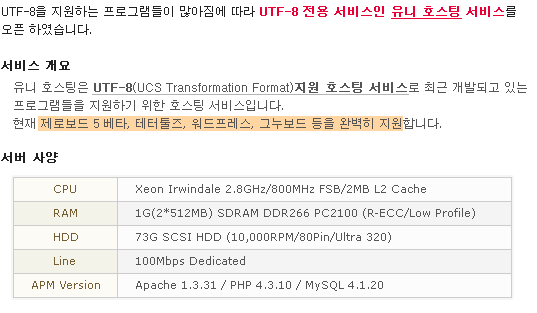 [공지] UTF-8 전용 유니호스팅 상품 오픈