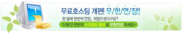 이젠 매월 연장하지 않으셔도 OK! 단 한번 스크립트 첨부로 무한연장의 혜택을 누리세요~ |