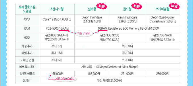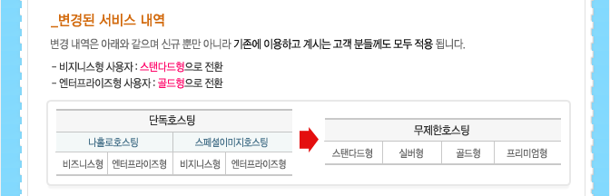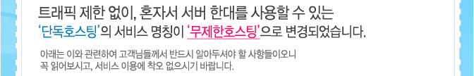 단독→무제한 호스팅 명칭 변경 안내