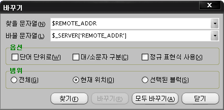 2. $REMOTE_ADDR 이라는 글자를 모두 $_SERVER['REMOTE_ADDR'] 로 변경합니다.