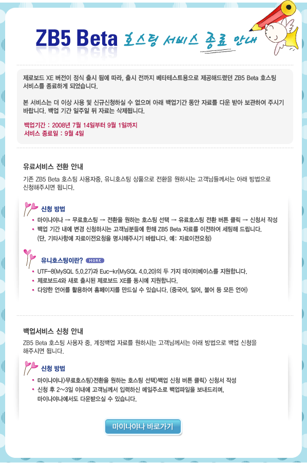 ZB5 Beta 무료호스팅 서비스 종료 안내