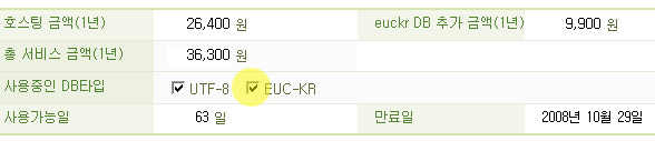변경 UTF-8 기본 지원, EUC-KR 사용여부 선택 가능 UTF-8만 사용할 경우 서비스 이용요금 감액 (환불X, 차액을 일할 계산하여 사용기간 연장) |