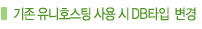 마이나야나>호스팅리스트>유니호스팅 선택>DB타입 변경 클릭 UTF-8이 기본으로 선택되어 있으며, EUC-KR의 추가를 원하실 경우 선택하시면 됩니다.