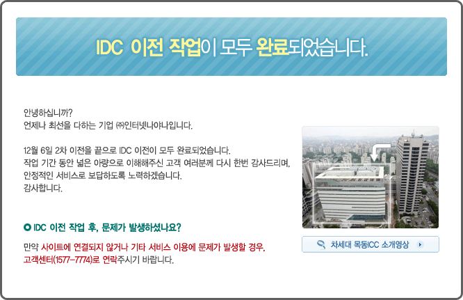 IDC 이전 작업 완료 안내