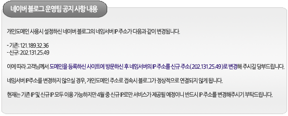 네이버 블로그의 네임서버 IP주소가 변경되어