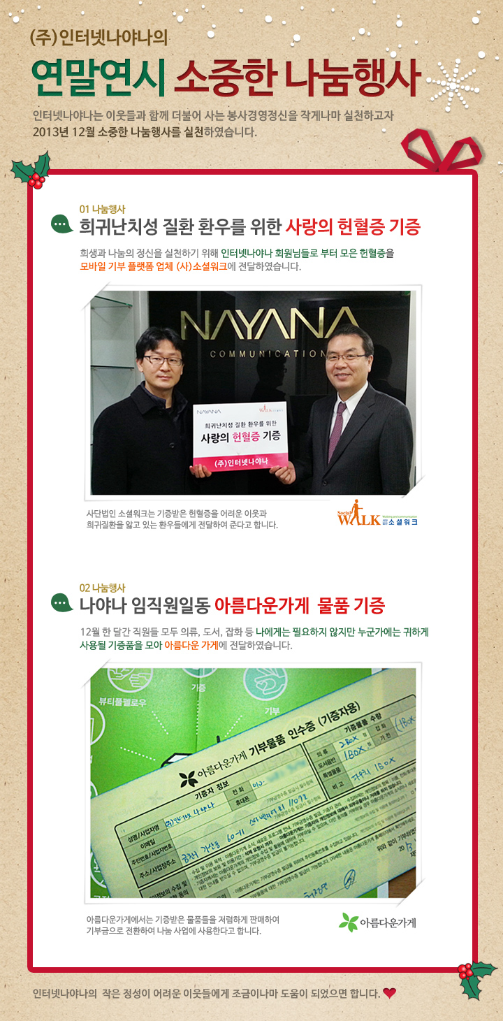 인터넷나야나가 작지만 소중한 나눔행사를 실천하였습니다.