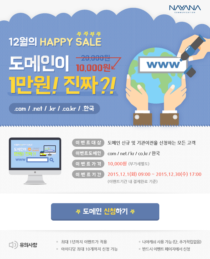12월의 HAPPY SALE 도메인 1만원